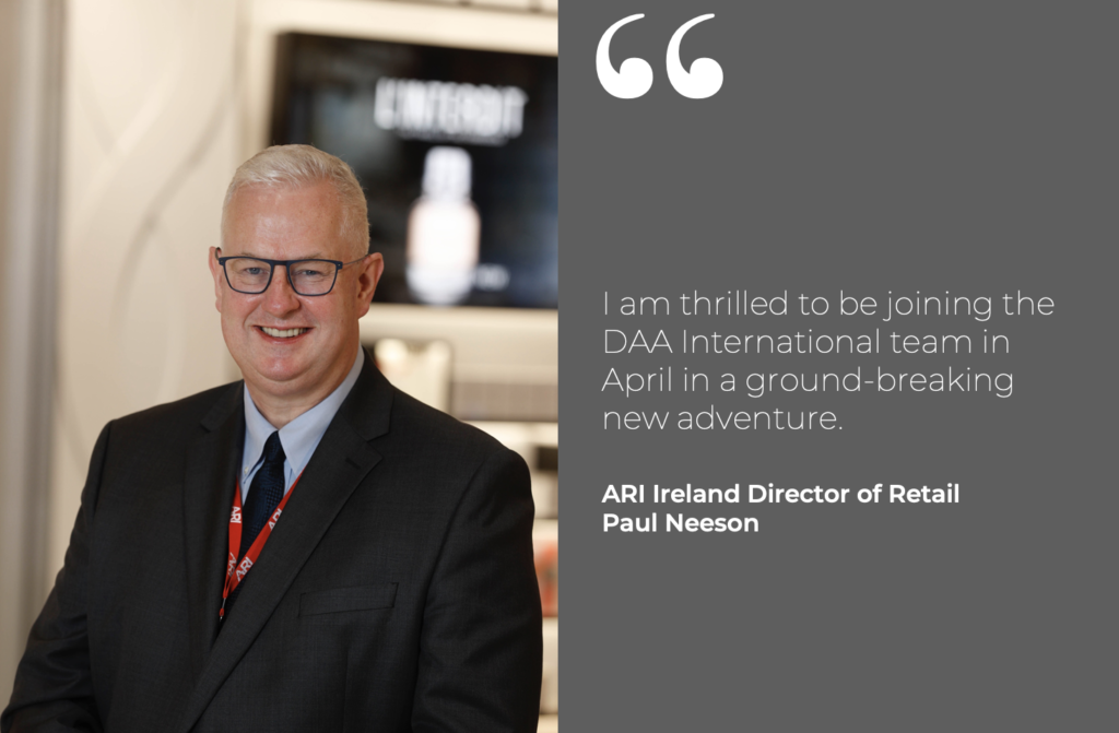 ARI Chief Executive Officer Ray Hernan said: “Today ARI announces that Paul Neeson will join the daa International team in Saudi Arabia. With over 20 years’ experience in travel retail, Paul’s talent, formidable skillset, and his ability to successfully drive the development of world-class retail concepts and offerings stands testament to him. Paul has been an instrumental part of the ARI team. We will miss him greatly and wish him well with this exciting new opportunity as part of the wider daa Group.”